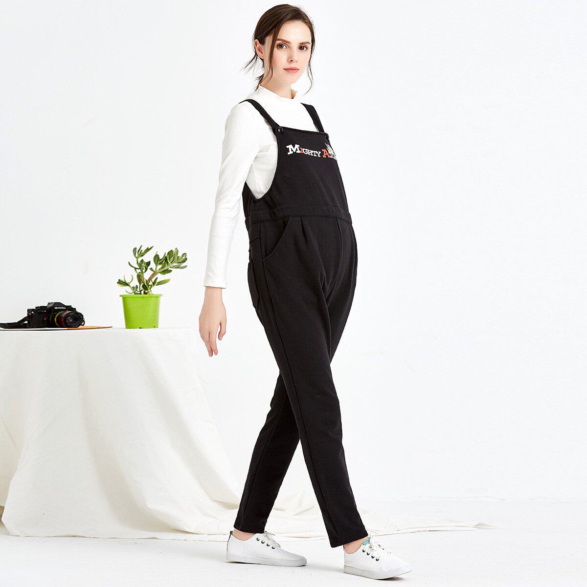 Pregnancy color pregnant woman with baby cuddling bag pants autumn winter new youthful fashion cartoon printed loose plus suede thickened pregnant woman pants