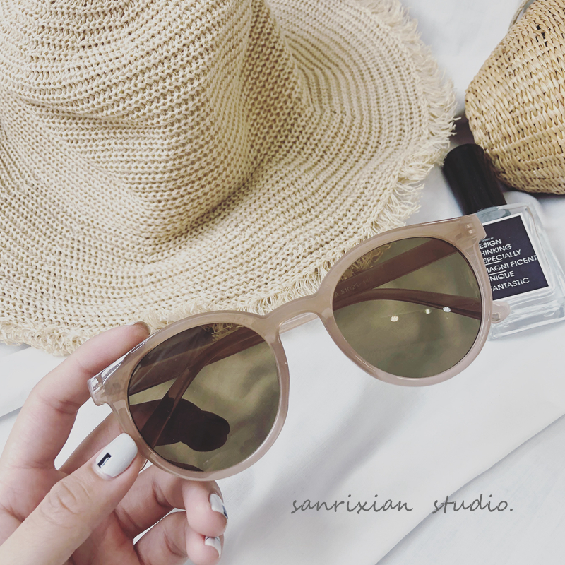 Anna's small S Han Renaissance Round Frame Milk Tea Mocha Tea Polarized Sunglasses Little Box Chic Sunglasses