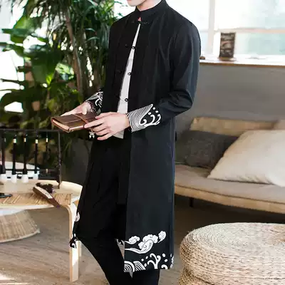 Autumn Chinese style men's long version of the windbreaker men's linen Hanfu ancient coat ethnic style cotton linen Tang suit men