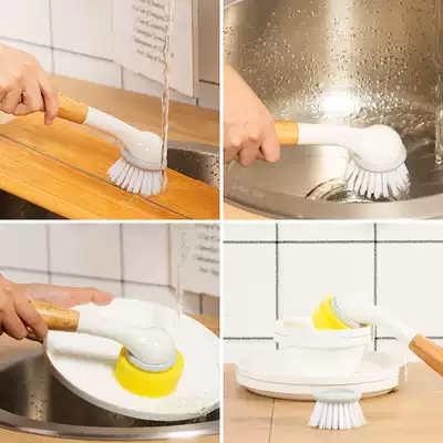 Yue flavor kitchen two-in-one dishwashing brush long handle sponge brush kitchen Brush pan artifact cleaning soft brush