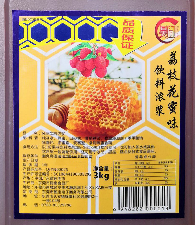 New date HY Haoyin lychee flavor honey syrup thick syrup 3000g baking seasoning milk tea shop raw materials