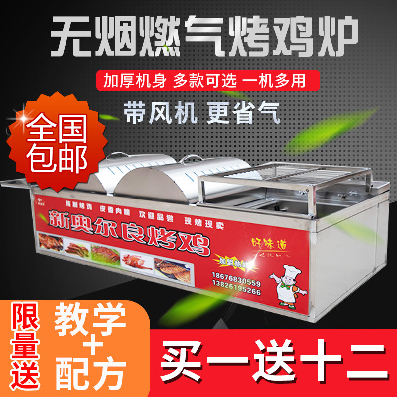Gas smoke-free roast chicken stove Automatic rotary barbecue car Orleans roast chicken legs and wings Environmental protection commercial natural gas stove
