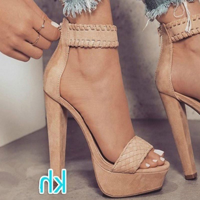 new2018 women's super high-heeled thick-heeled sandals босоножки heel-strap sandals