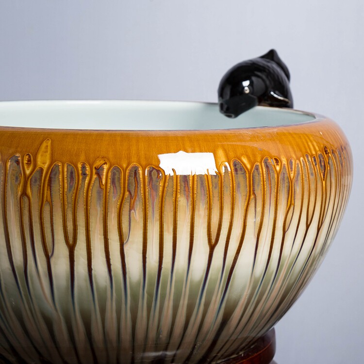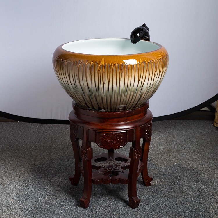 Jing Porcelain Workshop Fish Bonsai de Town Ceramics Fish Tank with Ring Water Filter Water Spray Oxygenation Feng Shui Fish Tank Home Decoration