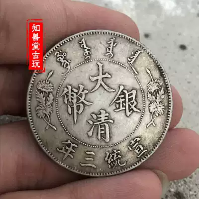 Pure silver silver dollar Black and yellow pulp Yuan Big head Yuan Big head three-year Qing Dynasty Silver Coin Qing Dynasty Silver coin Qu Shulong Silver Dollar