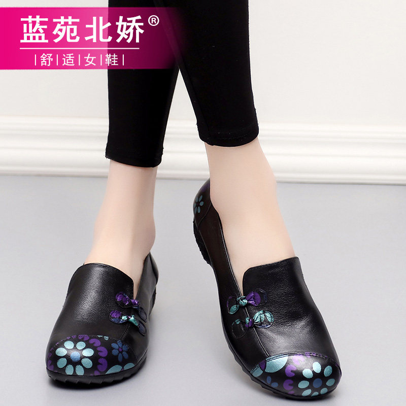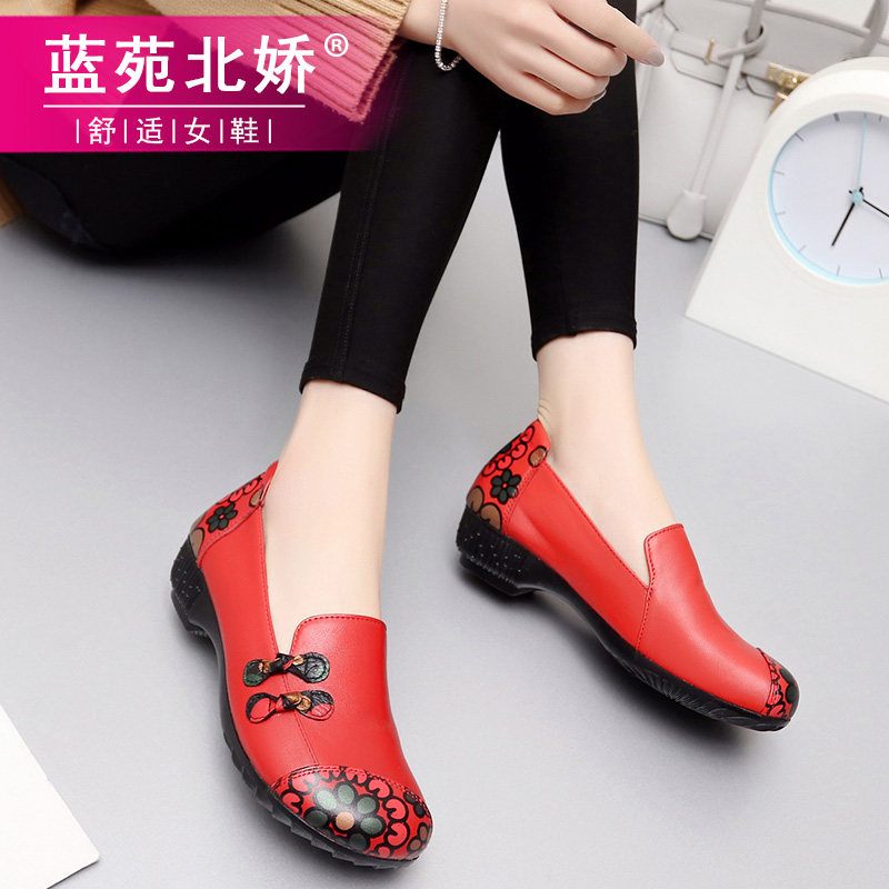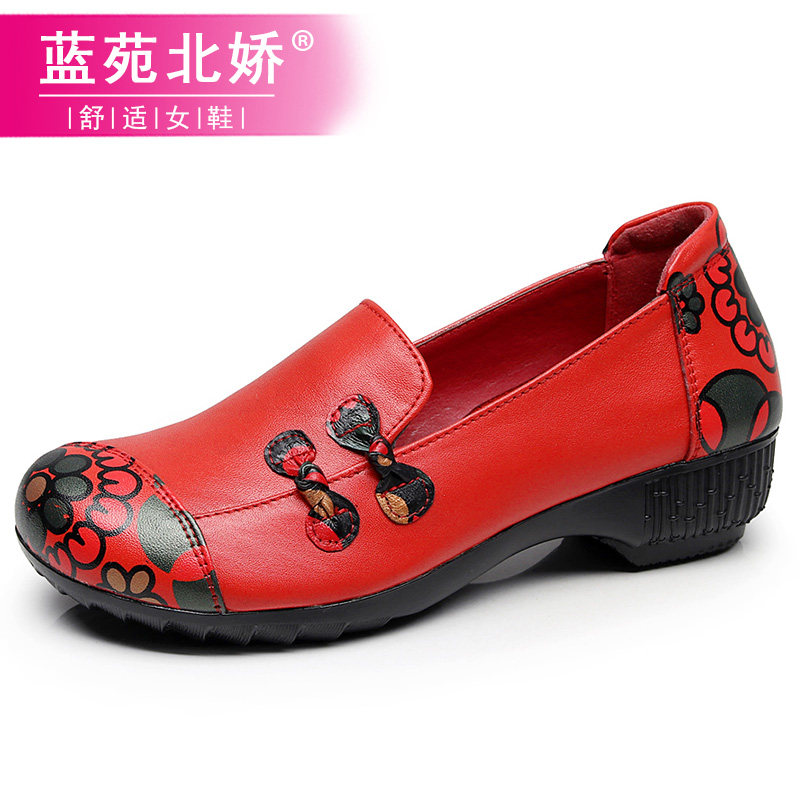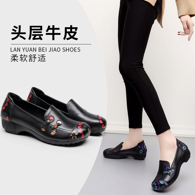 Mom shoes spring and autumn single shoes 2023 new leather shoes soft soles comfortable slope heels middle old and old female shoes