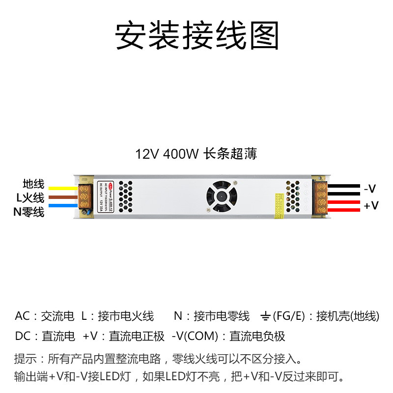 LED ultra-thin switching power supply 12V 33A 400W Rab Kab light box built-in long strip power transformer