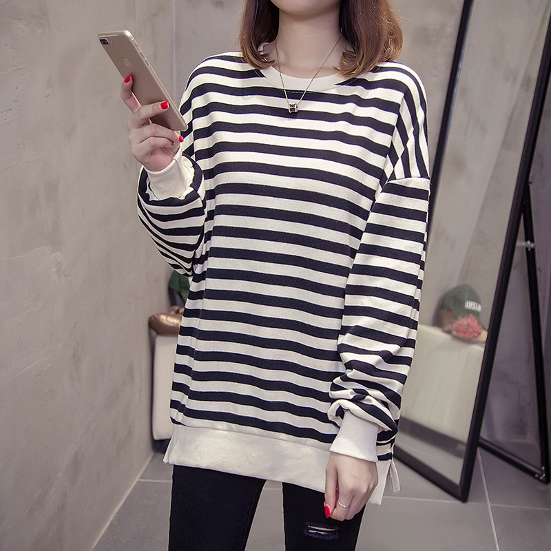 2022 Spring autumn winter new loose large size stripe thickened thick cotton T 100 hitch pure cotton long sleeve T-shirt woman
