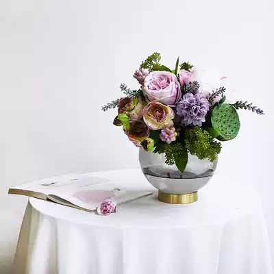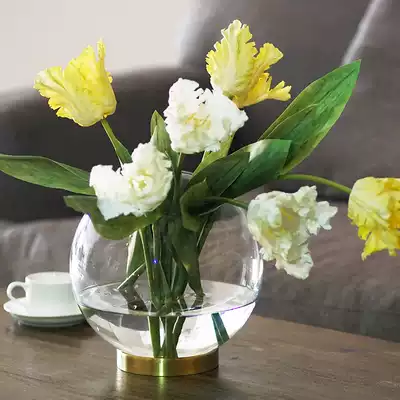 Copper ring base transparent vase