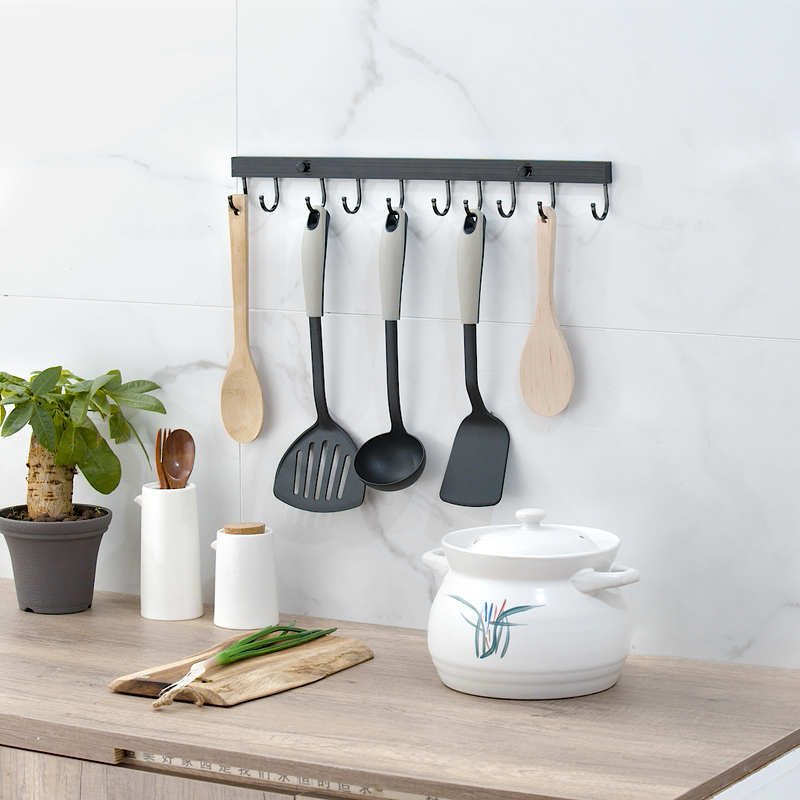 Space aluminum kitchen hook bathroom punch-free hanging rod rack row hook wall hanging kitchen and bathroom activity pendant nail-free kitchen and bathroom