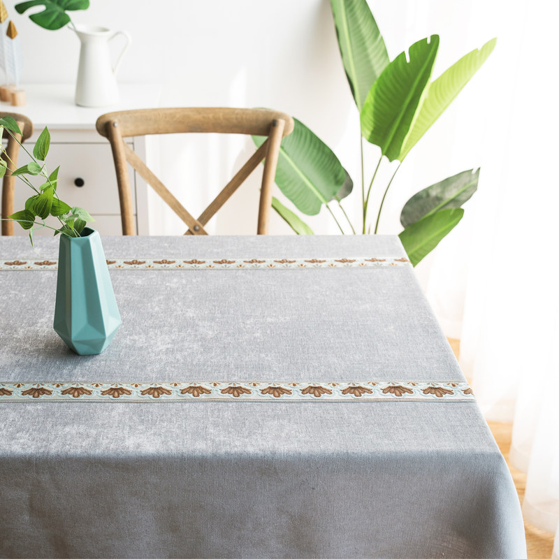 Embroidery table cloth art cotton linen rectangular table cloth modern minimalist grey tea table cloth table fabric table flag integrated gold velvet