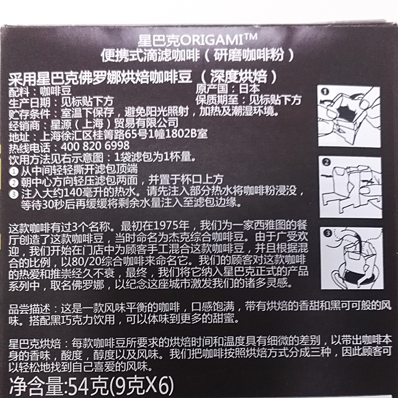 Imported Starbucks ear hanging Verona baked bacon coffee powder Ear Hanging Filter Bag Black Coffee 54g