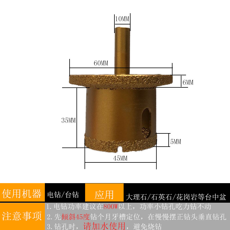 Diamond double-layer drill Basin drilling water pipe sink Dali stone ceramic drill basin perforated drill bit