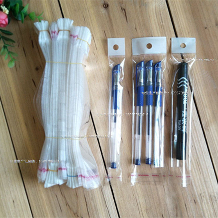 opp slim bag adhesive self-adhesive bag Pen Ball-point Pen Ball-refill Transparent Bag Supermarket Hanging Hole Bag Wholesale