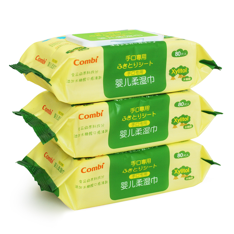 Kangbei baby wipes Hand and mouth special newborn baby wipes 80 pumping*3 packs of wipes with cover