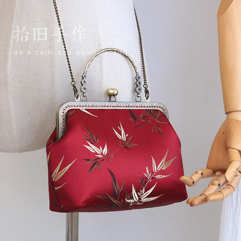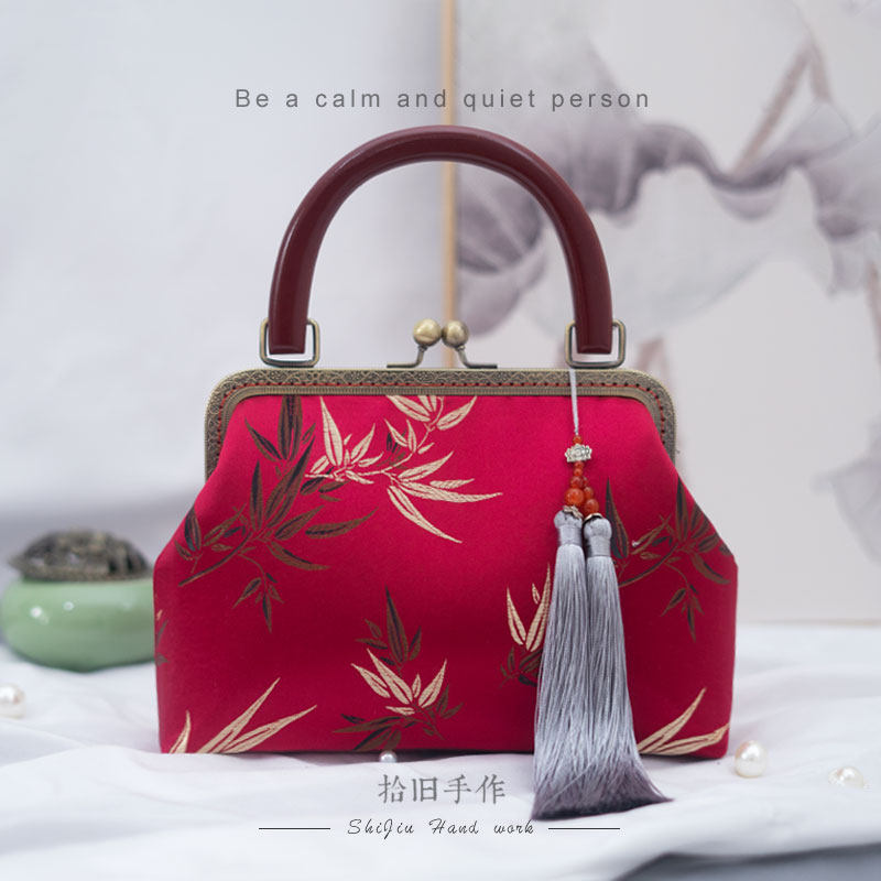 Small wine red bronze portable medium wine red wooden portable large wine red log portable mini wine red buckle bronze portable medium black ancient wooden portable black red bamboo leaf bamboo handbag small ink