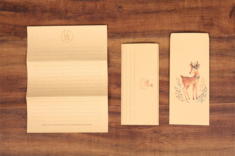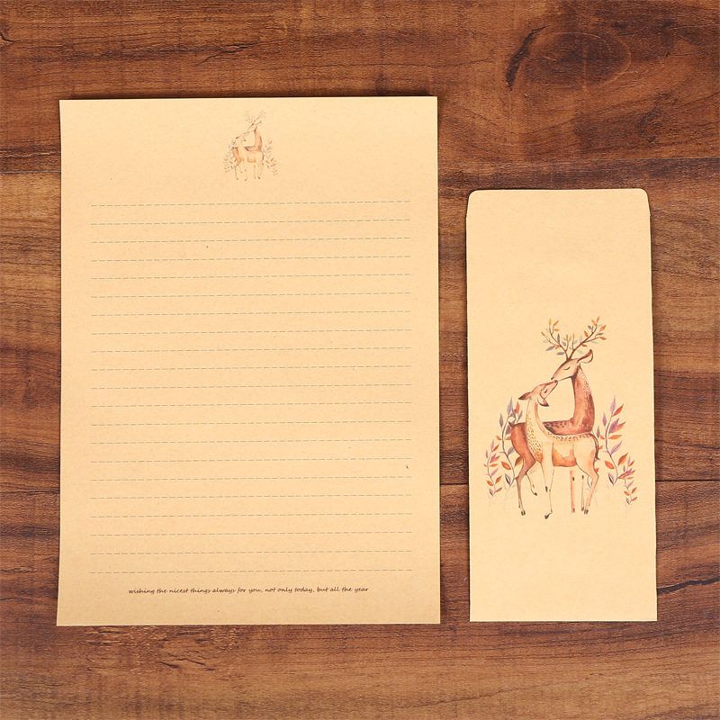 Literary Qing Kraft paper envelope package elk cross line love letter letterhead beautifully printed