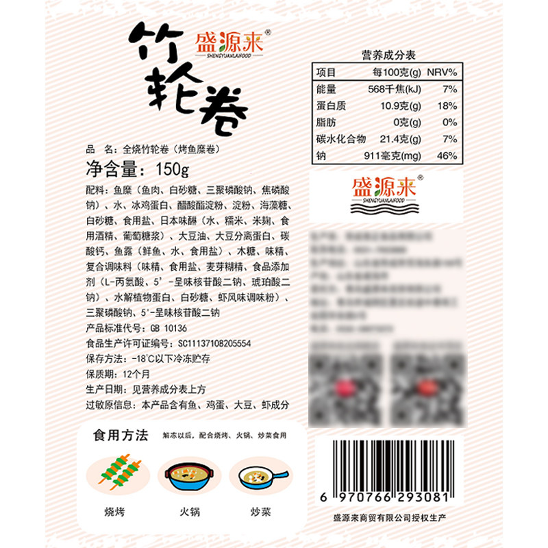 Surimi water, chicken protein starch, trehalose, white sugar, edible salt, soybean oil, soybean protein isolate, calcium carbonate, fish sauce, xylose, monosodium glutamate, compound seasoning, etc.