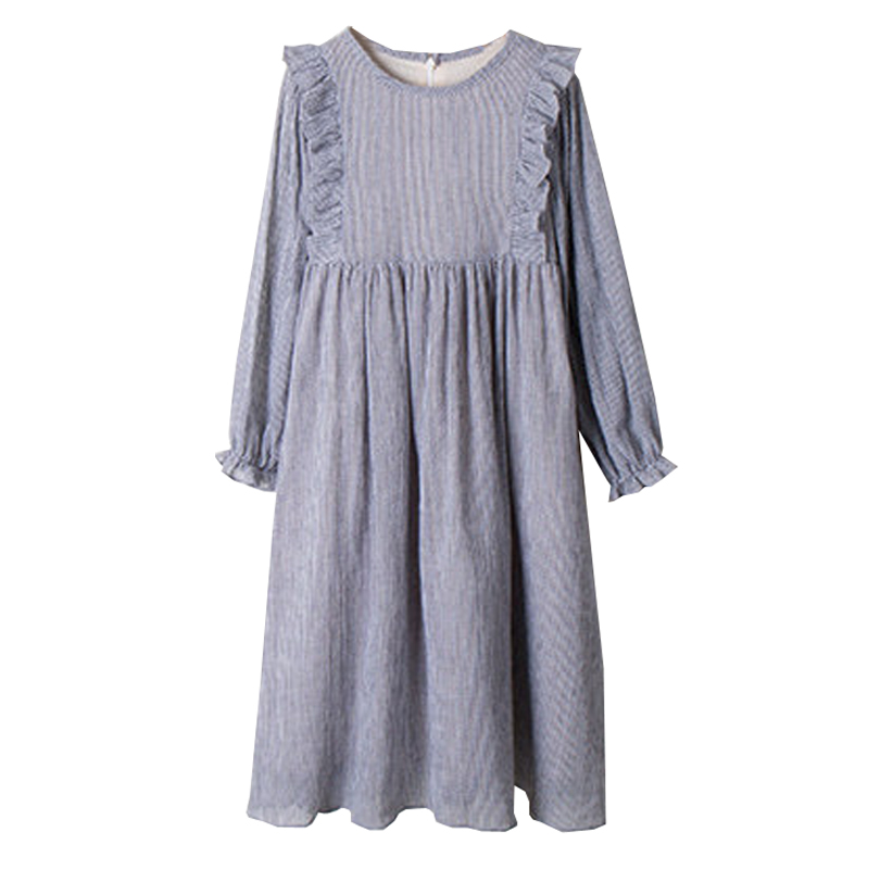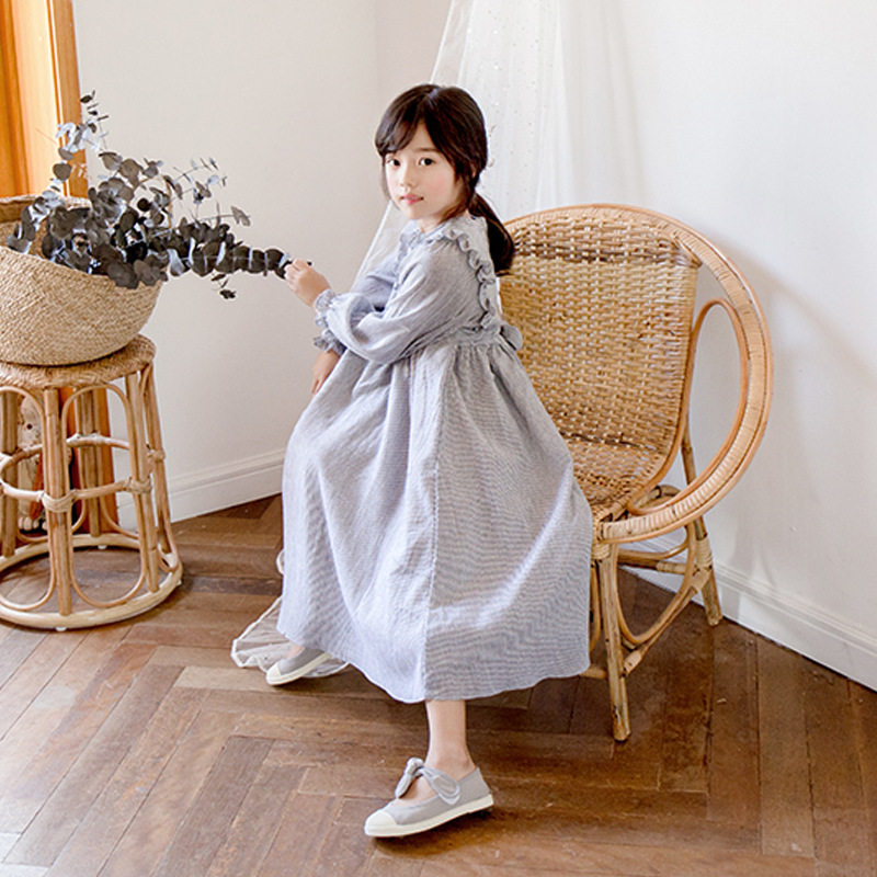 Girl 2022 Spring and autumn Korean version Little fresh and sweet floral side striped long sleeve doll dress female baby Long version of the dress