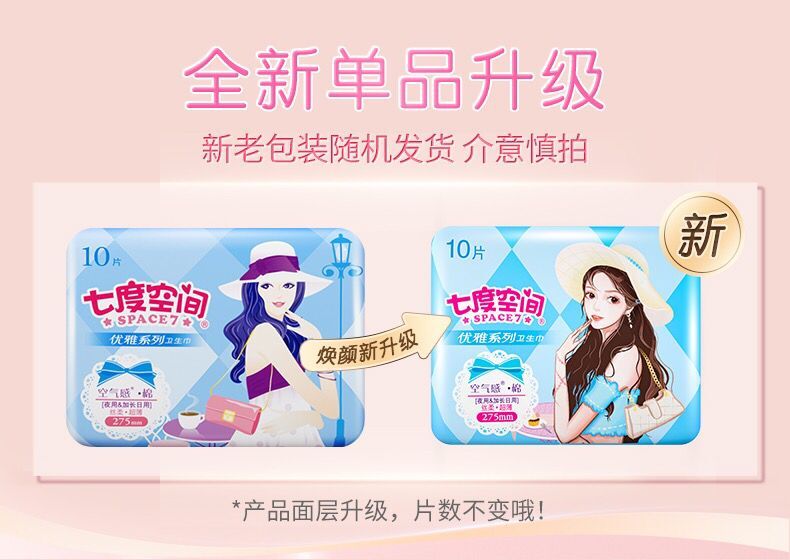 Seven degrees of space sanitary napkin women's elegant series pure cotton ultra-thin 275mm night combination pack of 10 packs of 100 pieces