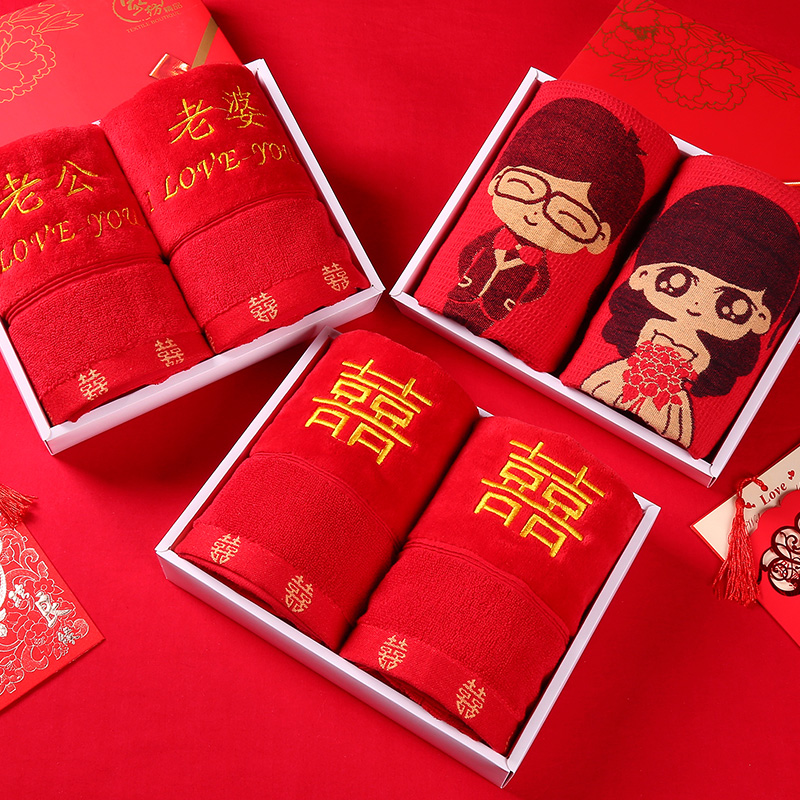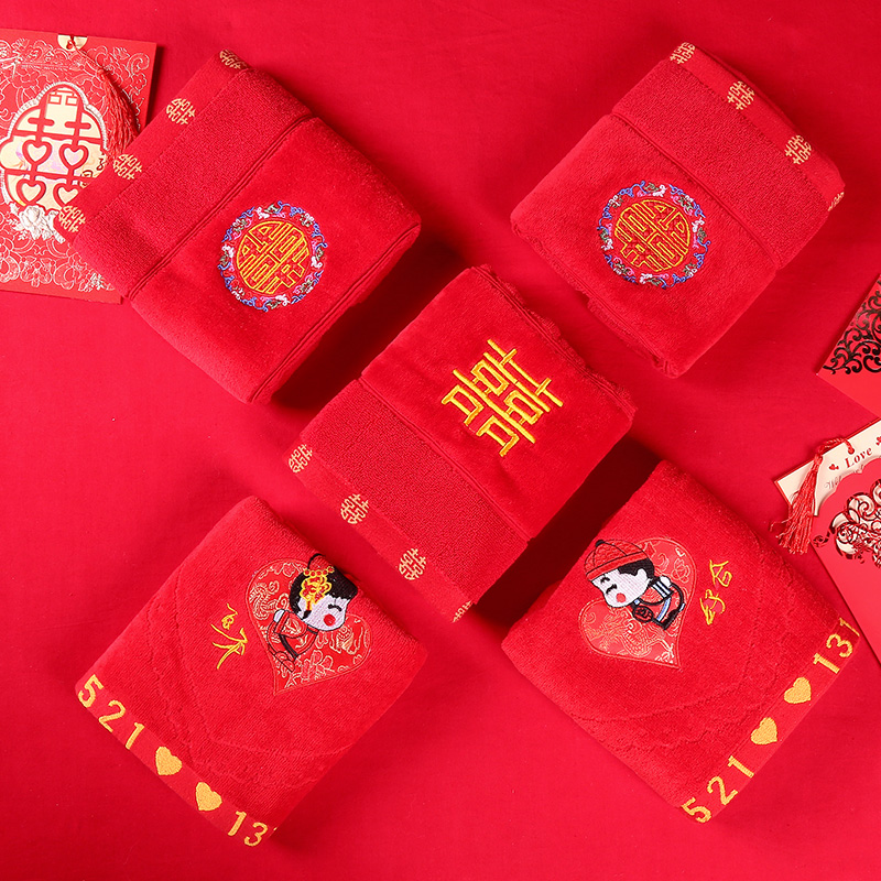 Wedding towel Wedding pure cotton pair of dowry red towels for marriage Happy towel red wedding supplies