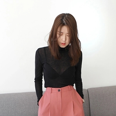 High collar hitch bottom shirt 100 lap high collar spring autumn winter black slim fit slim fit slim fit long sleeve T-shirt