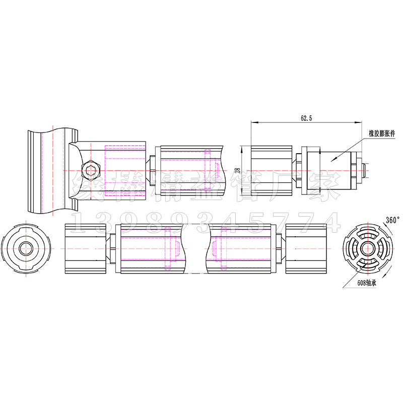 Third Generation Aluminum Alloy Lean Tube Accessories Aluminum Turn Rubber Puffy 360 degrees turn Components DYE28-08