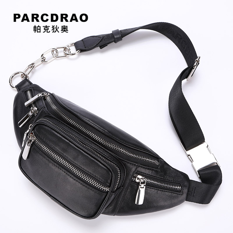 Leather chest bag female 2019 new ins super hot cowhide pocket bag star with the same paragraph multi-functional sheepskin Messenger small bag