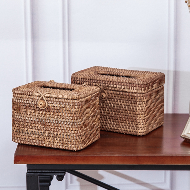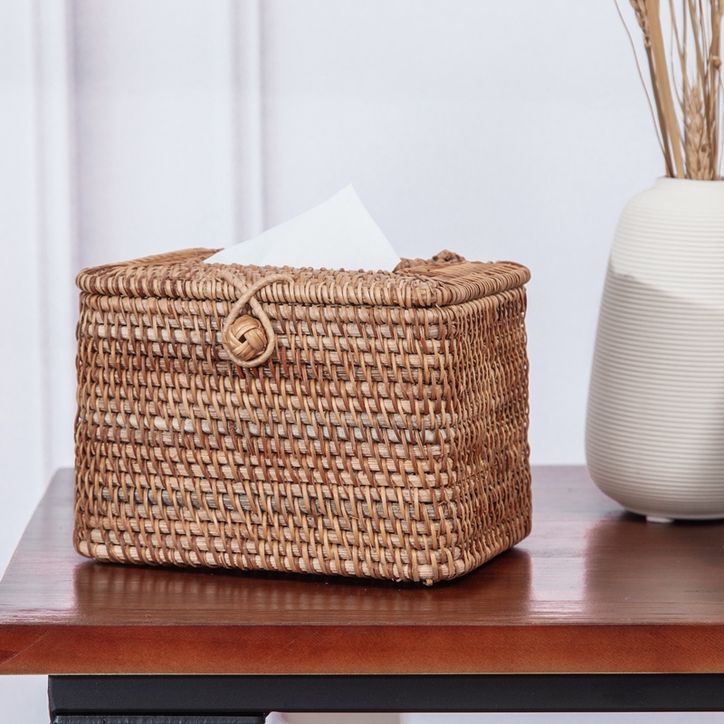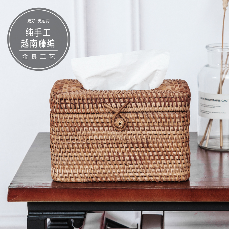 Rattan tissue box hand-woven toilet paper box household rectangular tissue box Vietnamese rattan tissue box with lid