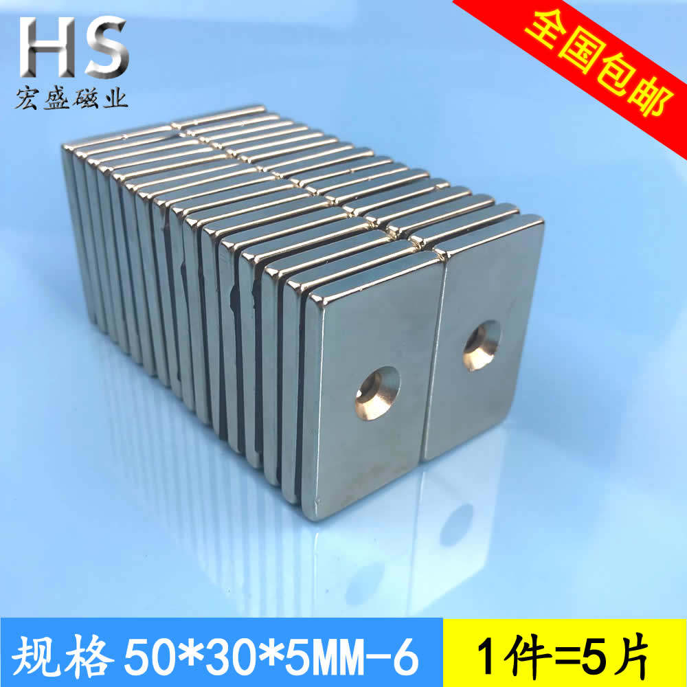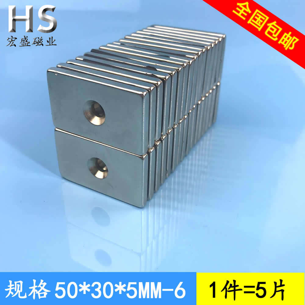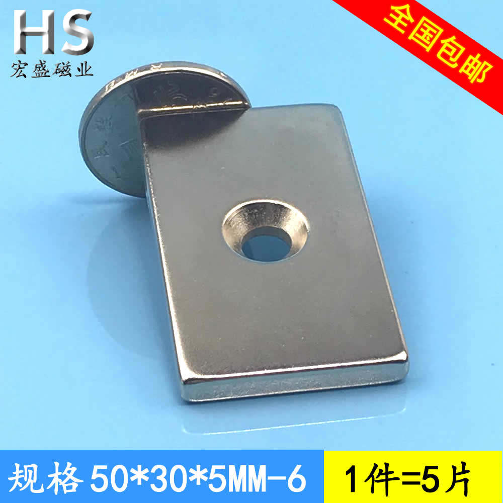 Strong magnet rectangular perforated strong magnet 50x30x5 with M6 countersunk hole small magnet magnet magnet