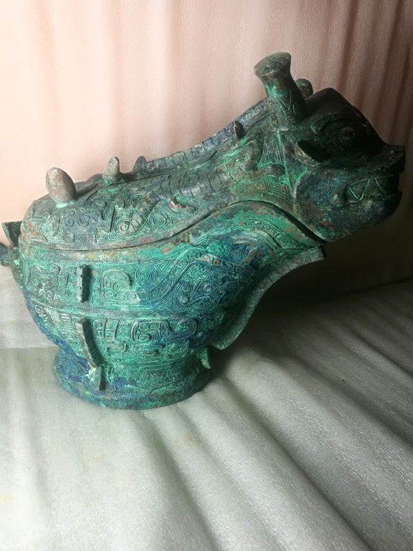 Smoke cloud streams antique bronze ware Shang Dynasty Dull Sound Carbonated to Heavy Red Spotted Green Rust Collection Canine Manufacturer Direct Sales