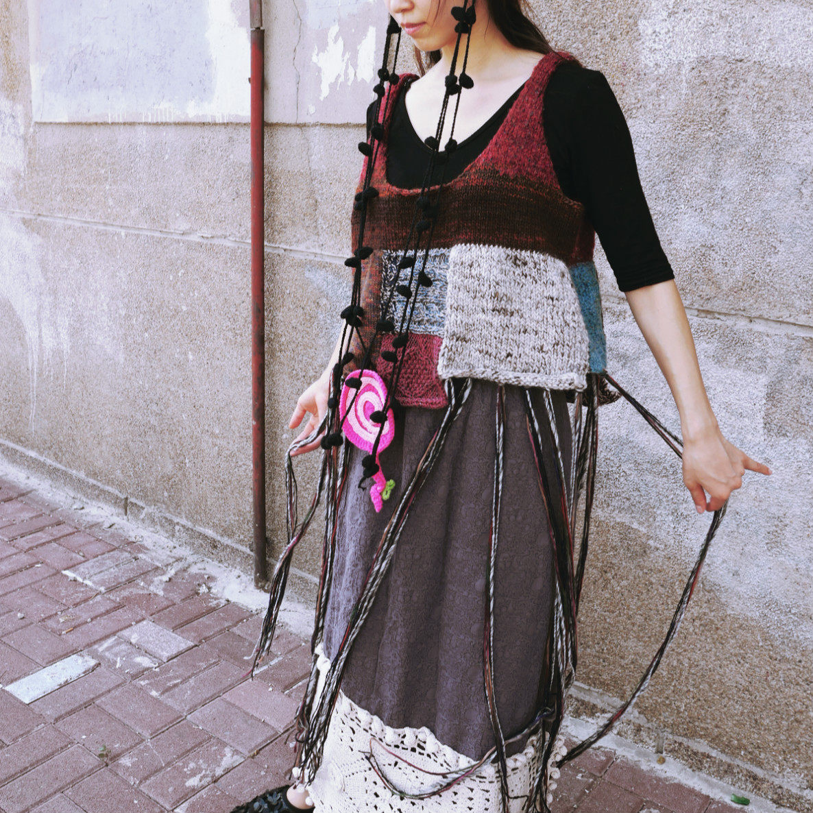 Outside the mountains ~ one thousand Love original art Fan retro pure handmade knitted loose pure wool line waistcoat waistcoat harness