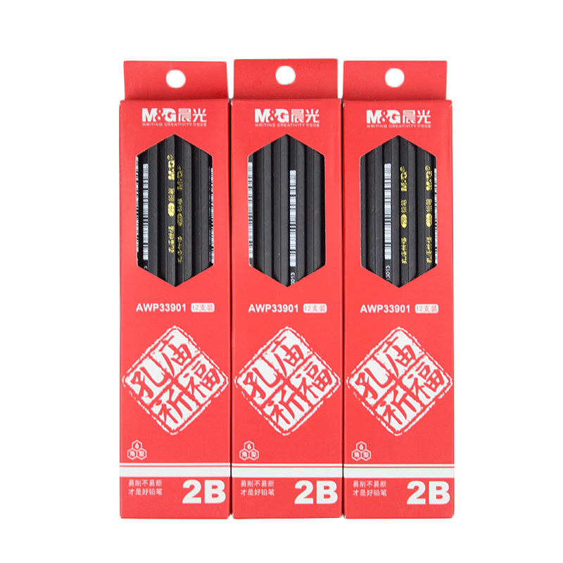 Morning light stationery 24 clothes 2B pencil Kong temple praying for student examination with 6 angle rod hexagonal type pencil 33901