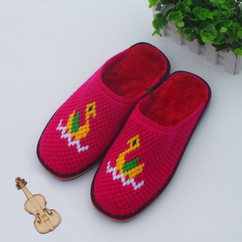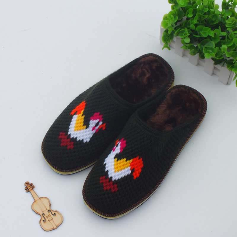 Dezhimei non-slip wear-resistant plus velvet thick hook wool slipper sole weaving pure handmade wool shoes online