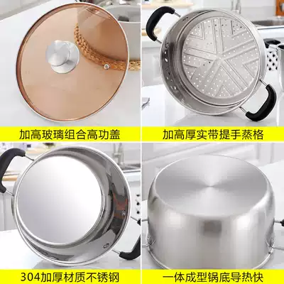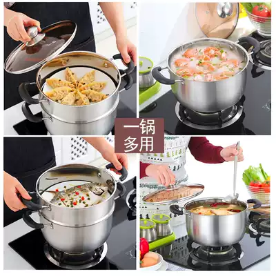 Soup pot stainless steel 304 household thickened pot with stew pot cooking pot induction cooker gas 22-24-26cm