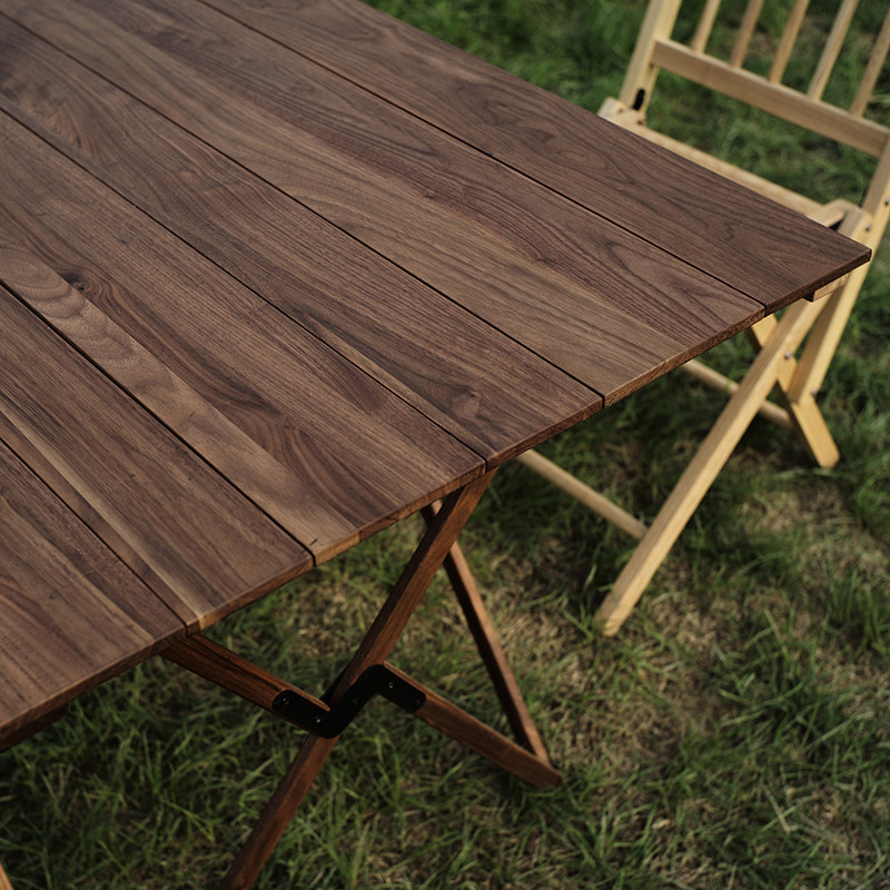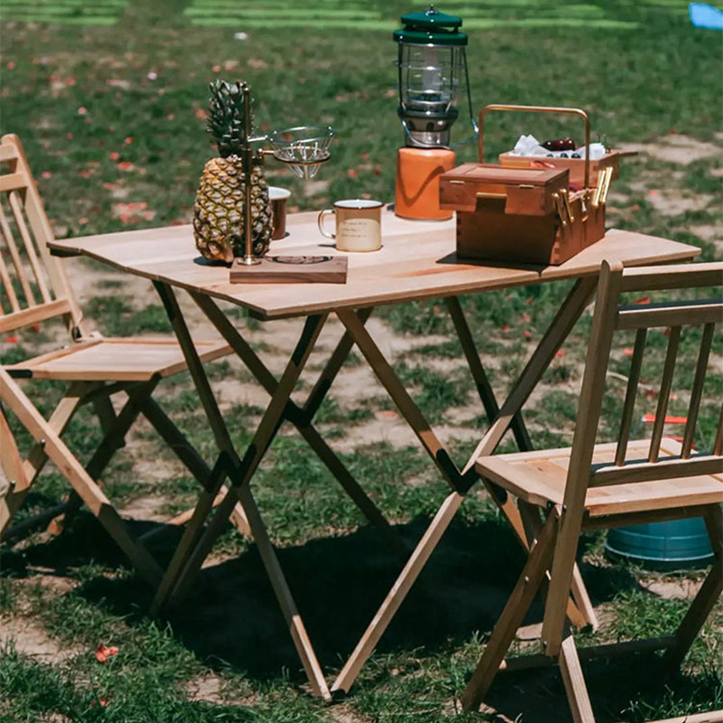 KINOCO solid wood folding table Portable outdoor high egg roll table Camping simple square table Small apartment dining table