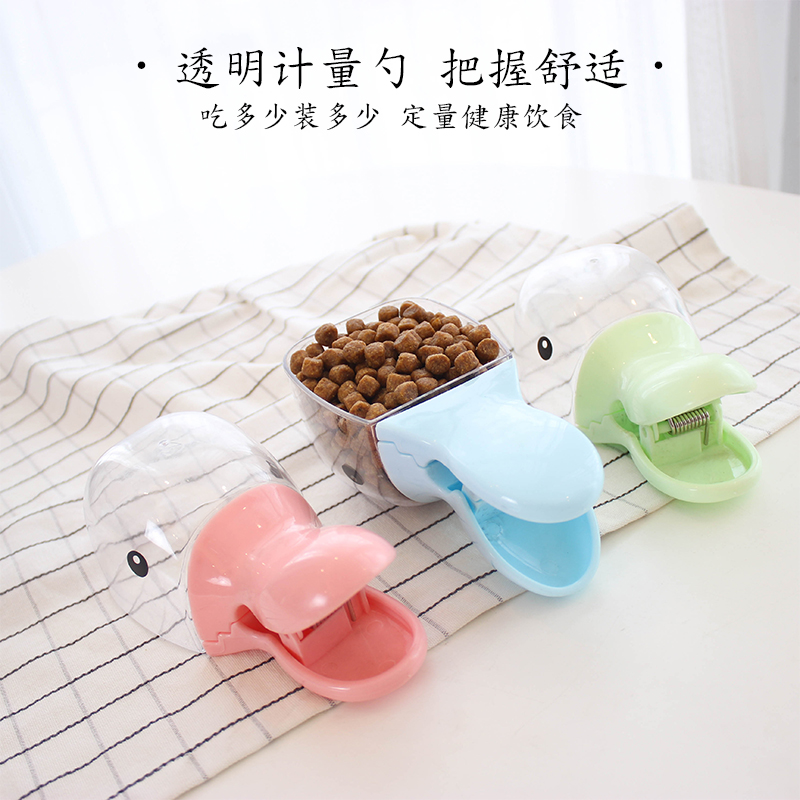 Cute pet food duck mouth spoon dog food cat food shovel teddy puppy measuring food spoon snack sealing clip
