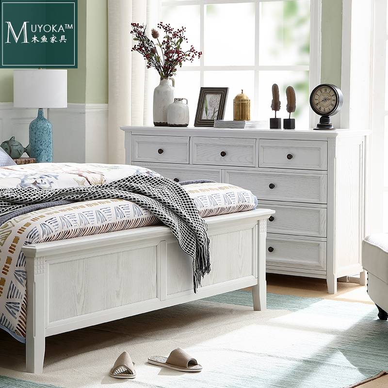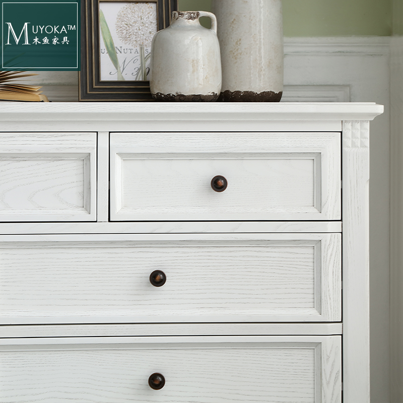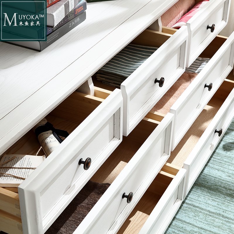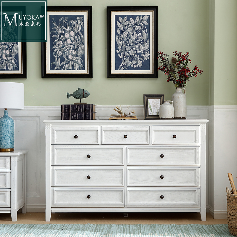 American Countryside White Wax Wood Bedroom Storage Nine Bucket Cabinet-Taobao