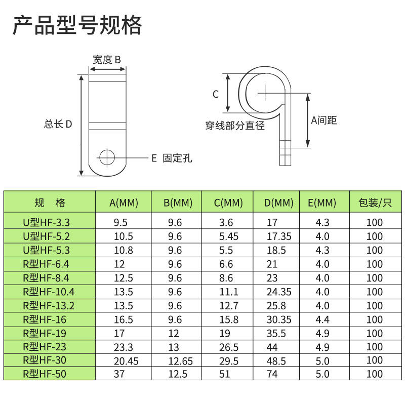 U type 3 3mm (100 white) U type 5 2mm (100 white) R type 5 3mm (100 white) R type 6 4mm (100 white)