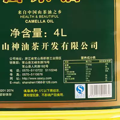 Shanshen squeezed camellia oil 4L Changshan tea seed oil pure wild tea tree oil baby edible oil grade vegetable oil