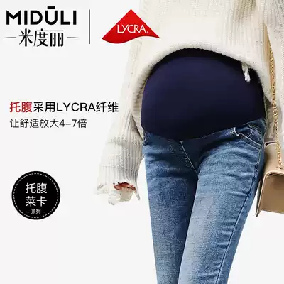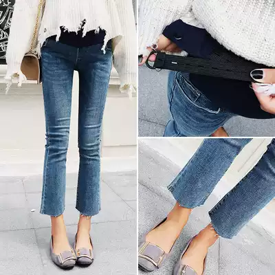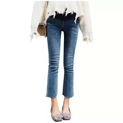 Pregnant women's pants spring and autumn thin fashion outside wear pregnant women's jeans tide mother nine-point Bell pants autumn pants