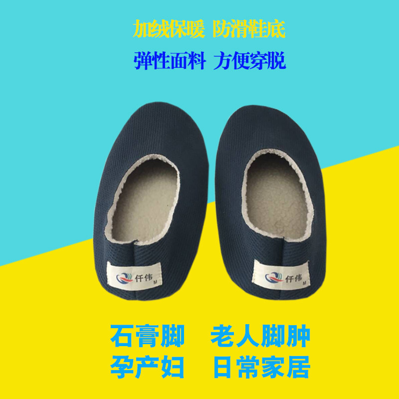 Anti-slip soft-bottomed floor shoes for the elderly in autumn and winter plus velvet foot fractures and plaster casts for patients with warm sleeves for the elderly with swollen feet