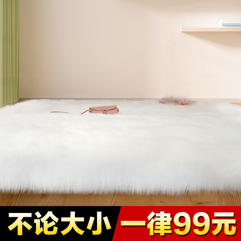 White fur bedroom with cute wool carpet floating windows, long hair mat living room window blanket
