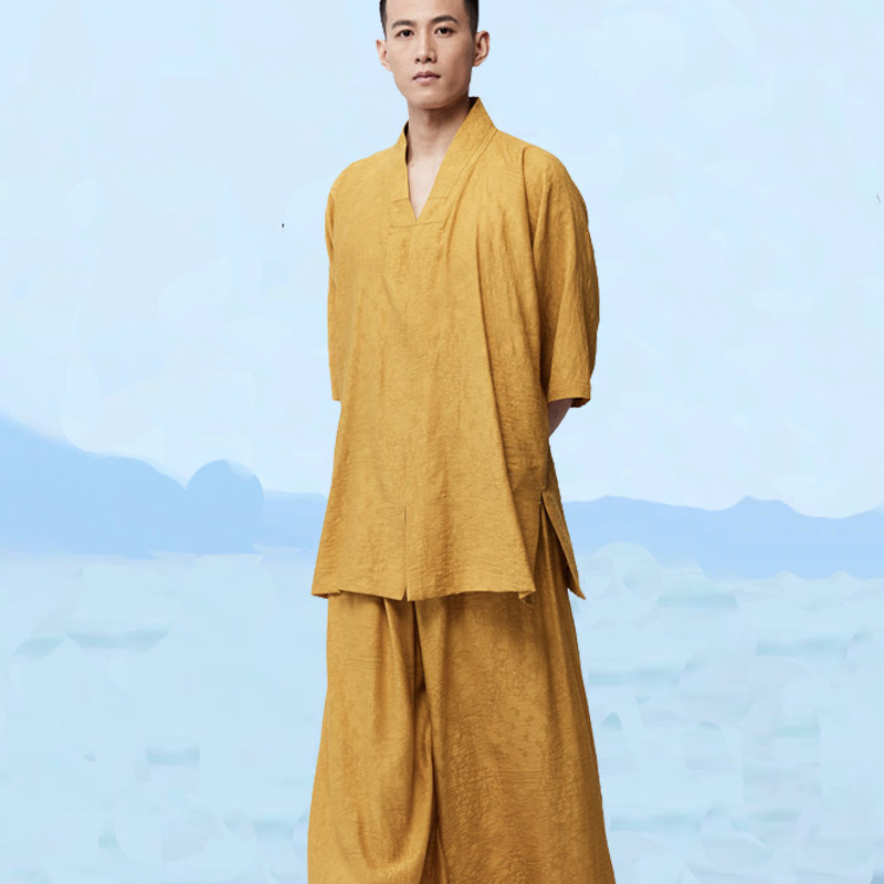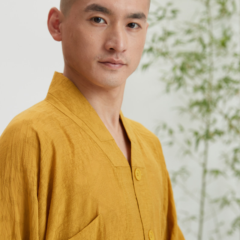 Summer clothes of Japanese dark pattern fabric with a seven - sleeve long sleeve set with dark clothes