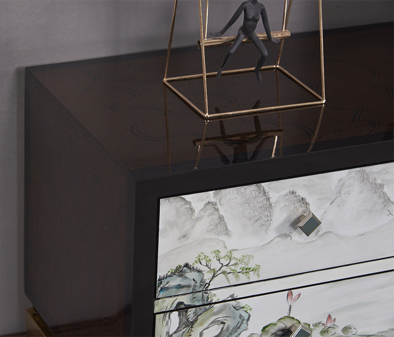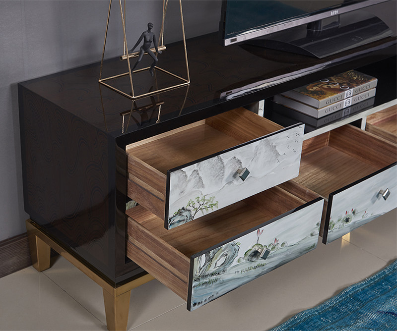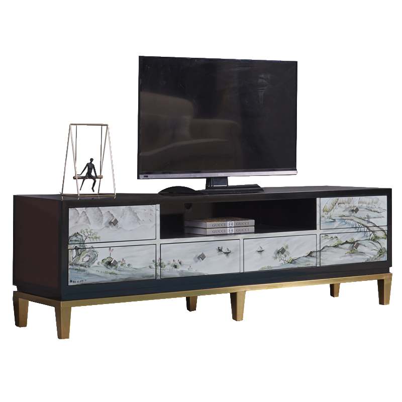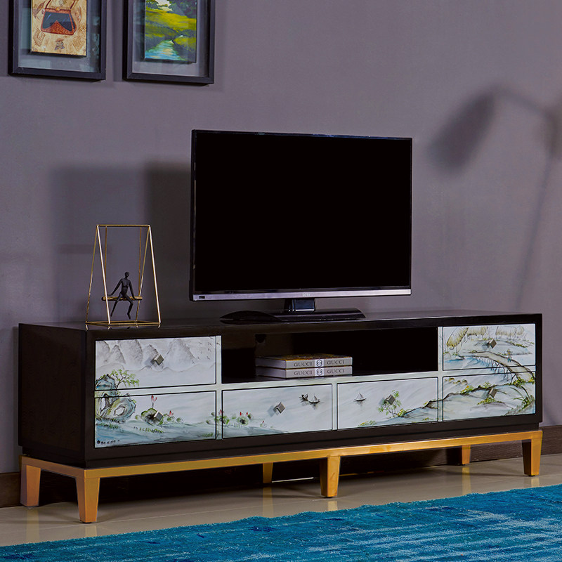 New Chinese-style solid wood plated metal cabinet foot complete floor cabinet post-modern painted coffee table TV cabinet combination set