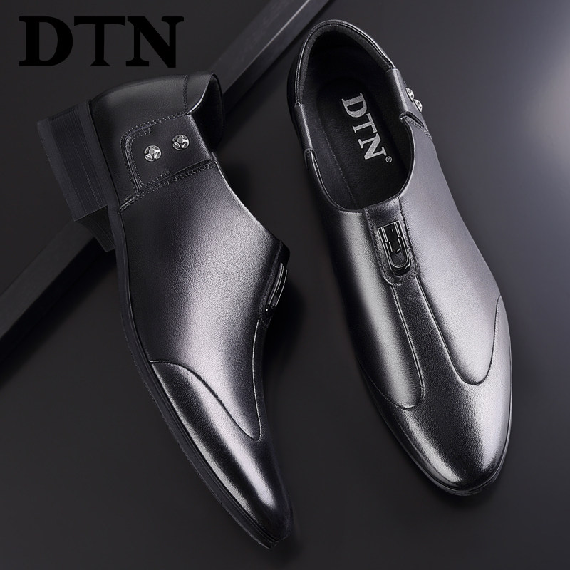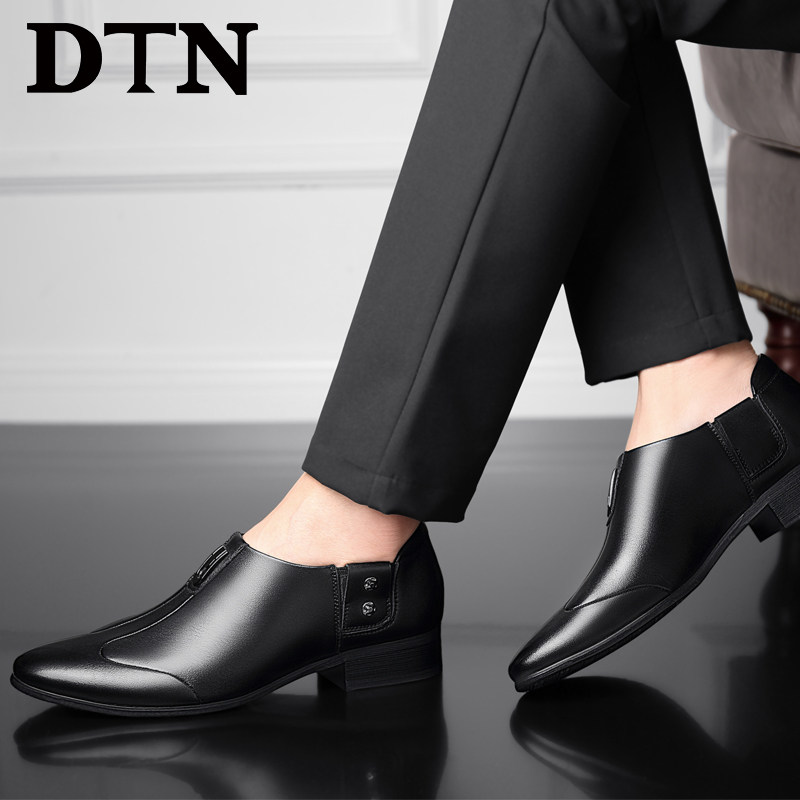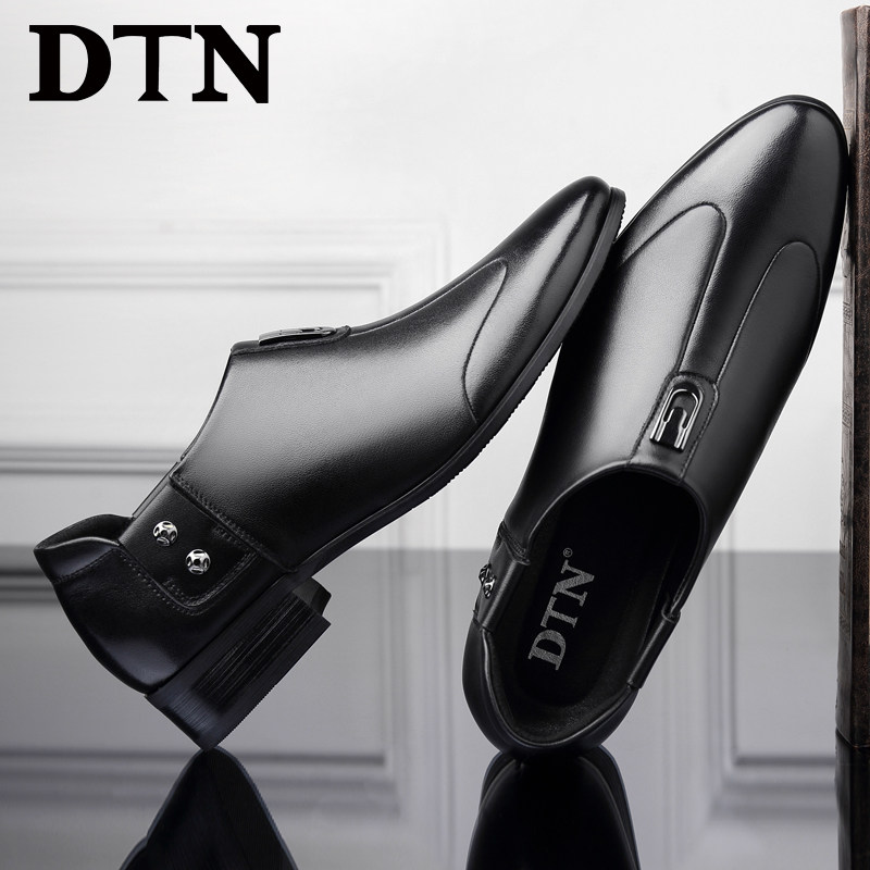 DTN leather shoes men's leather casual business formal suit men's wedding groom shoes soft bottom slip-on derby shoes