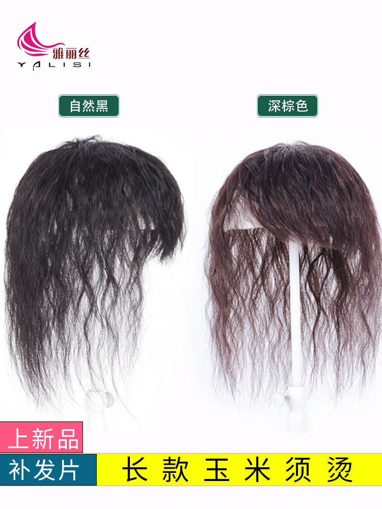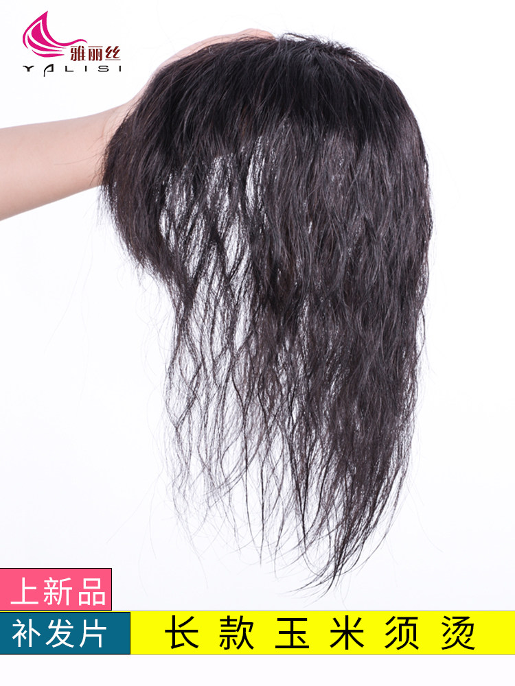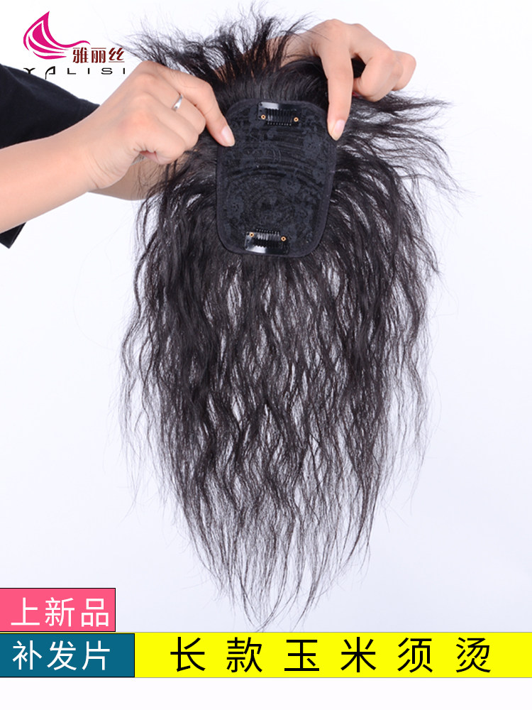 Real hair wig long curly hair piece wig top replacement hair piece female head top replacement hair piece wig piece cover white hair wool curly hair