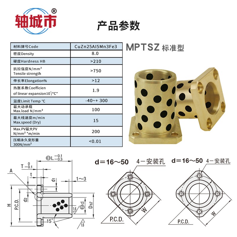 MPTSZ6 8 10 12 13 OFR03 OLBK graphite copper sleeve method flange self-lubricating bearing sliding bushing