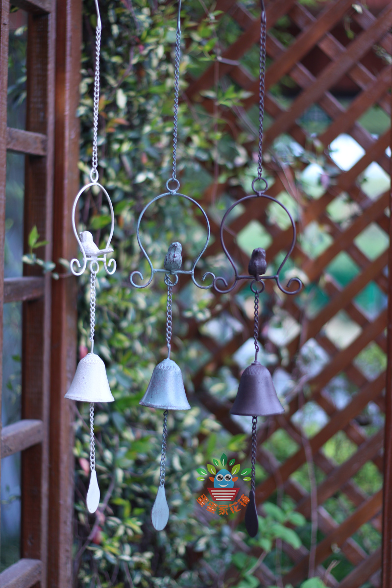 Multi-colored bird wind chimes made of old Wrought iron cast iron pendant European Style Retro hanging hanging bells Balcony Garden decoration