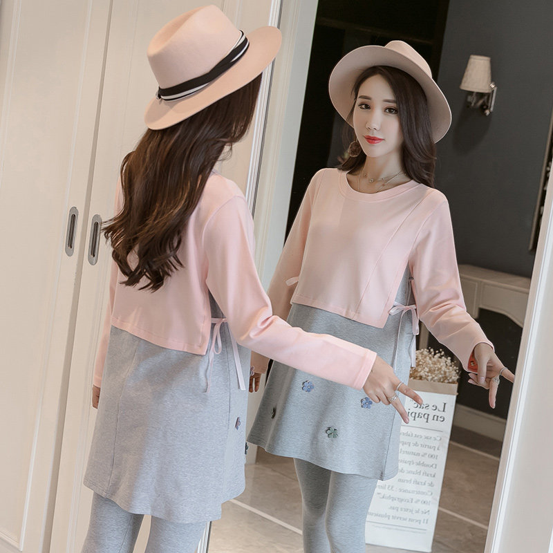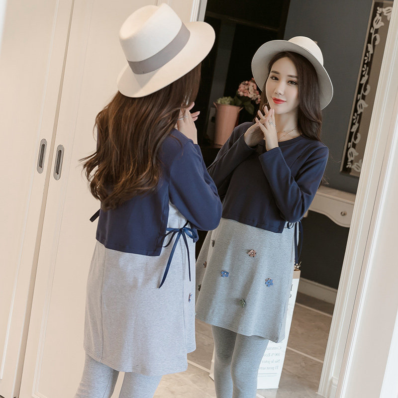 2022 new maternity dress spring fashion top Korean version can breastfeeding pregnant belly spring late pregnancy dress